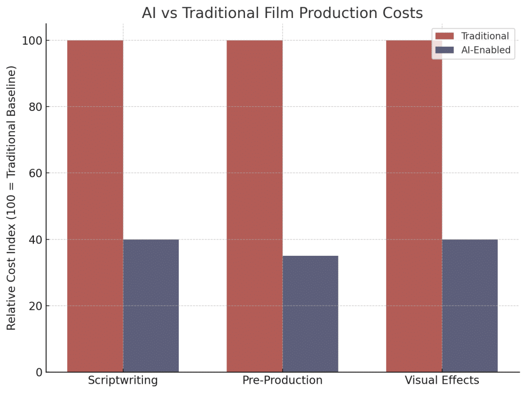 By embedding AI into scriptwriting, pre-production, and VFX pipelines, Rebeldogs AI reduces costs by 60% or more across the most resource-heavy stages of filmmaking — while maintaining cinematic quality.